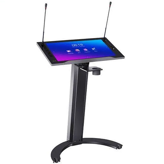 Un ordinateur intégré, deux microphones, et un écran tactile de 27 pouces avec une puissance de calcul 6Tops — tout dans un seul appareil. Le pupitre numérique avec écran LCD offre un style professionnel élégant, éliminant le besoin de préparer un manuscrit ou de transporter un ordinateur pour les discours, rapports ou enseignements.