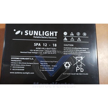 BATTERIE SUNLIGHT SPA 12V / 18AH (BAT12V18AH)